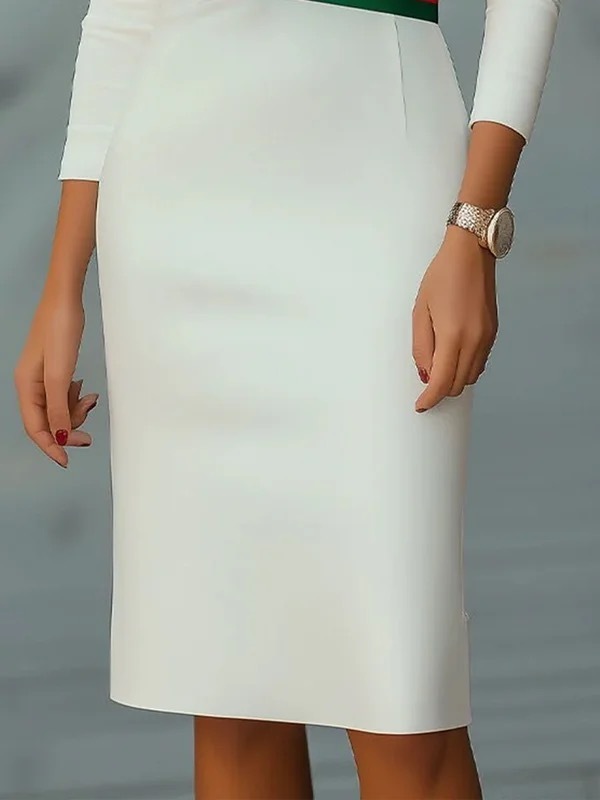 High Waisted Long Sleeves Contrast Color Split-Joint Mock Neck Midi Dresses