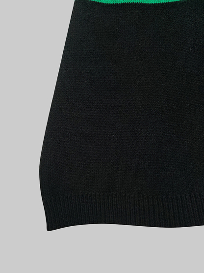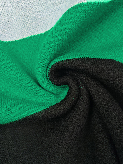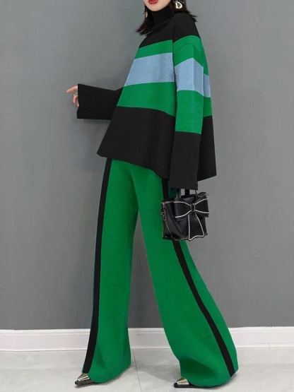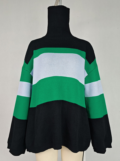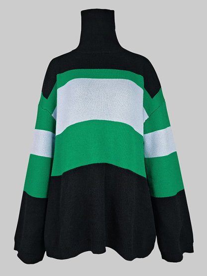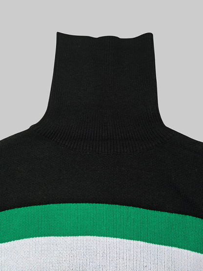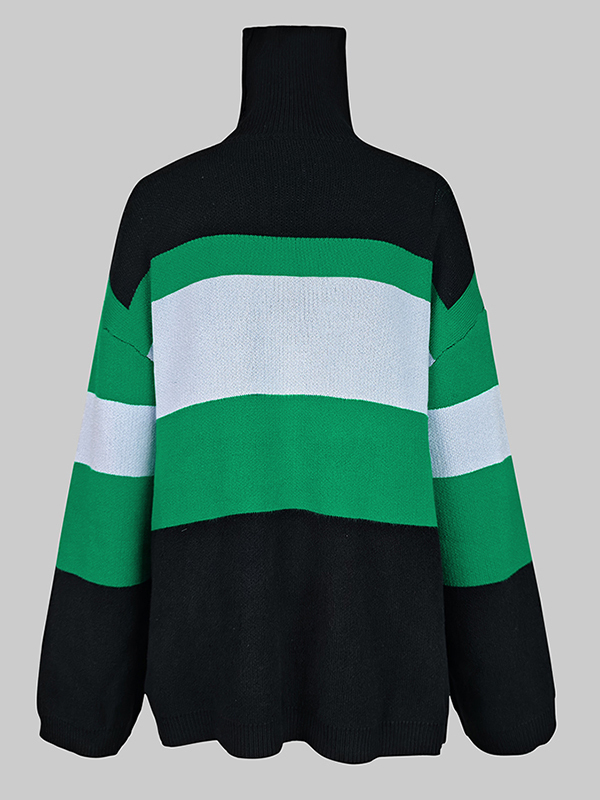 Flared Sleeves High-Low Contrast Color Split-Joint High Neck Pullovers Sweater Tops