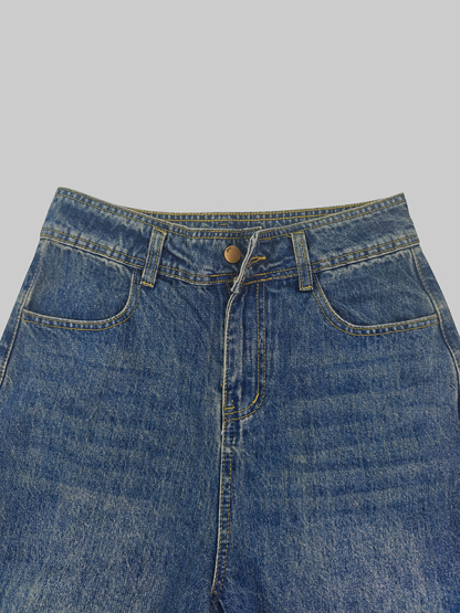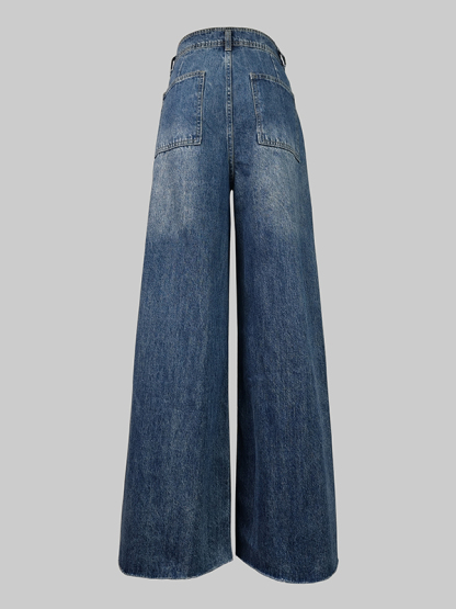 High Waisted Straight Leg Gradient Split-Joint Jean Pants Bottoms