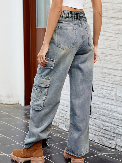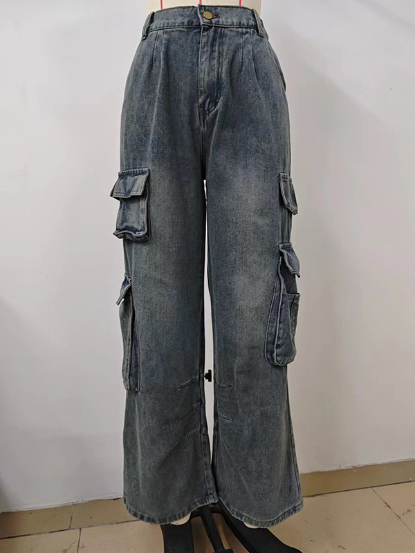 Split-Joint Pockets Pleated Loose Jean Pants Bottoms