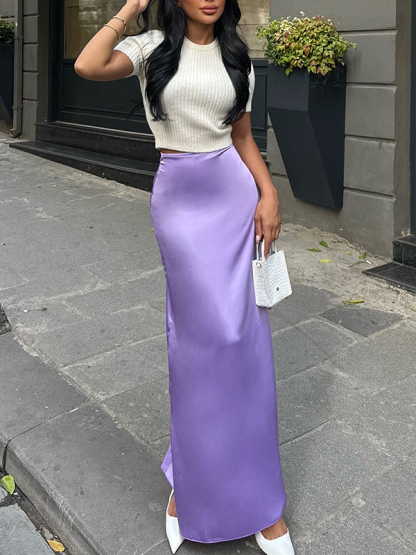 Split-Joint Solid Color Elasticity High Waisted Skirts