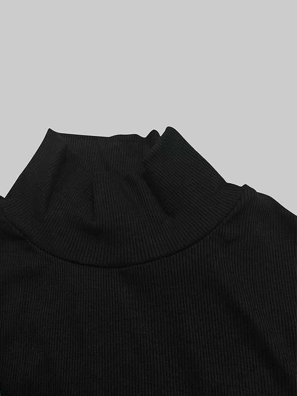 Skinny Solid Color Split-Joint High Neck T-shirts