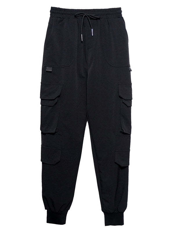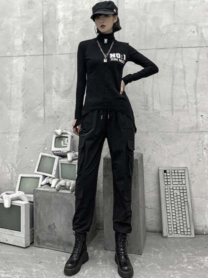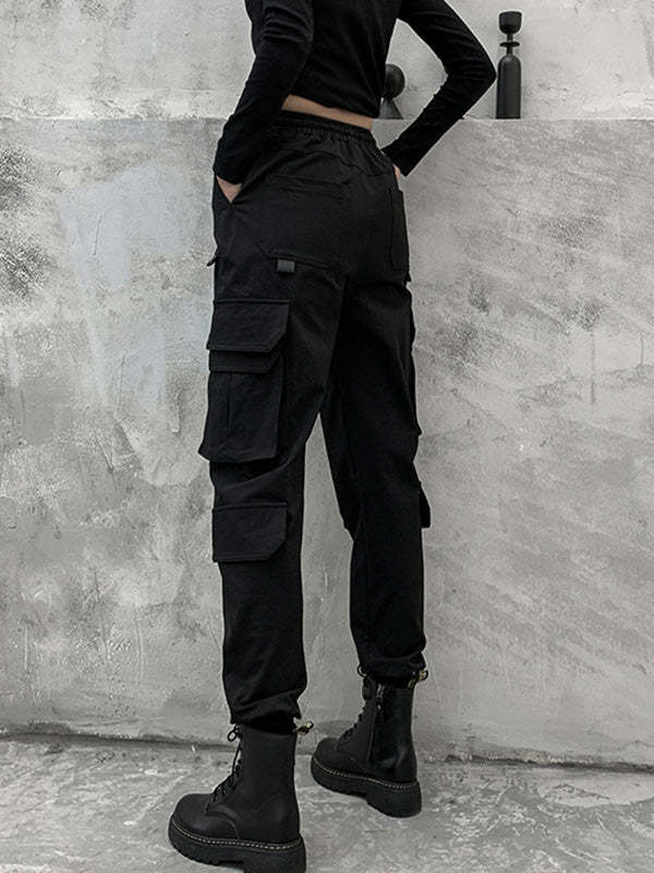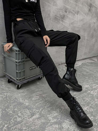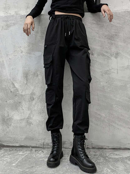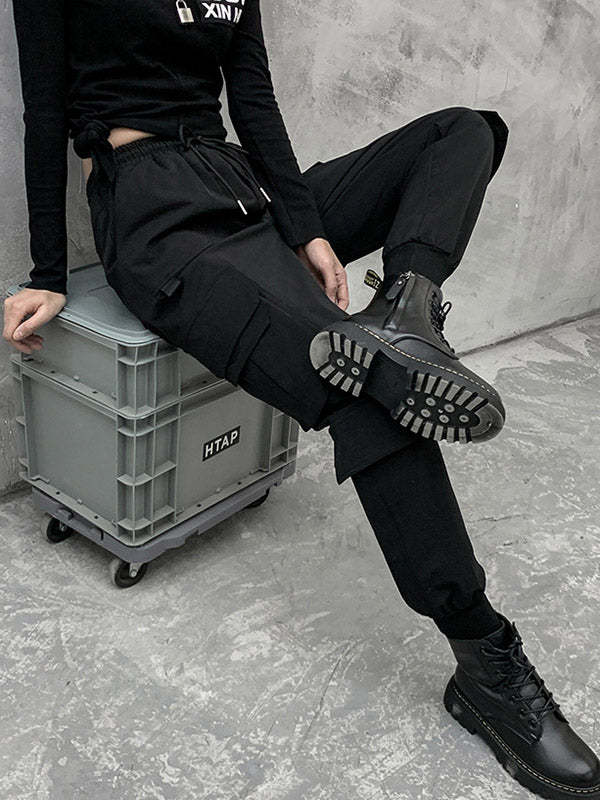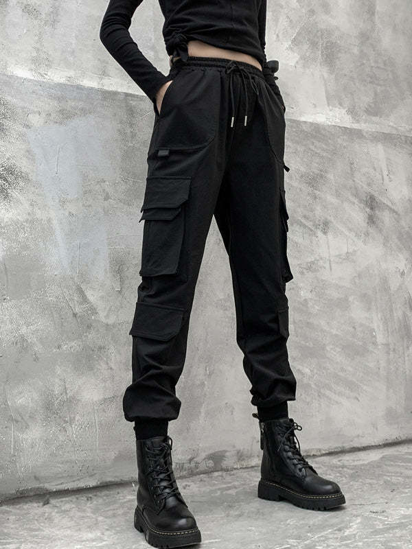 Stylish Drawstring Punk Empire Black Casual Overalls Pants