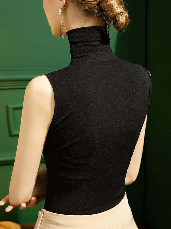 Stylish Skinny Sleeveless Mesh Split-Joint Solid Color High-Neck Vest Top