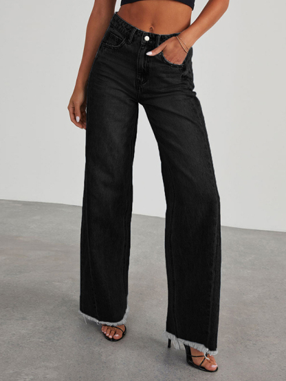 Tasseled Split-Joint Wide Leg High Waisted Jean Pants Bottoms