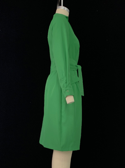 Long Sleeves Solid Color Tied Waist Deep V-Neck Mini Dresses