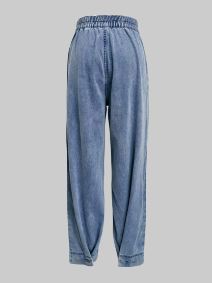 Loose Buttoned Solid Color Zipper Jean Pants Bottoms Knickerbockers Trousers