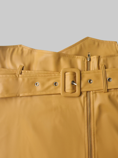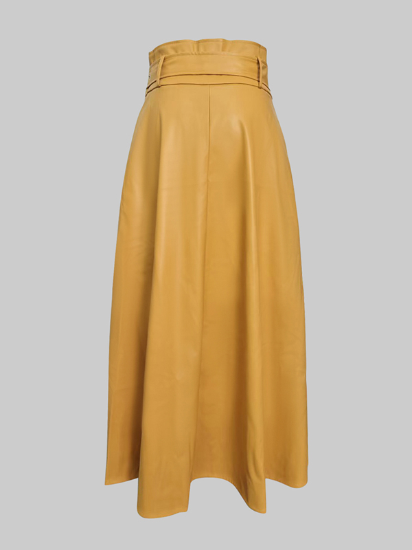 A-Line High Waisted Belted Pockets Solid Color Zipper Skirts Bottoms