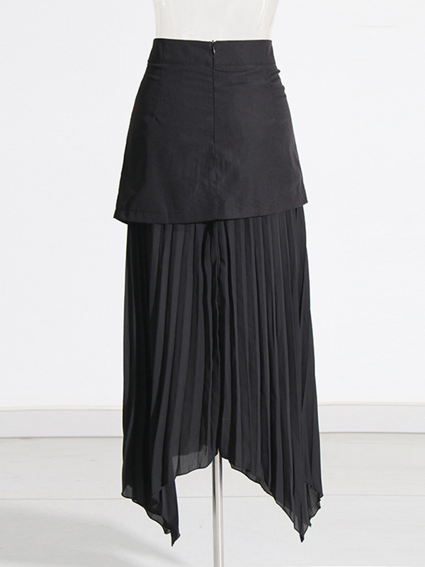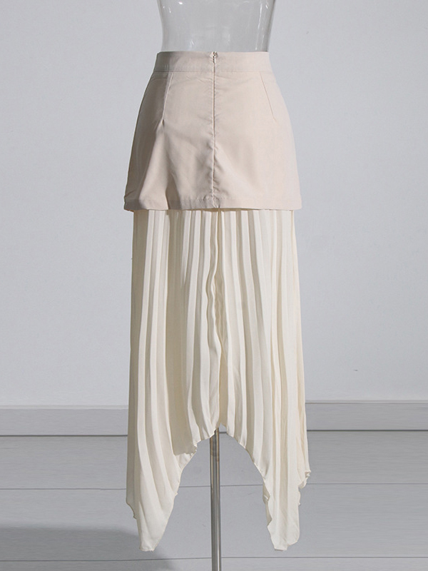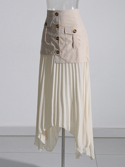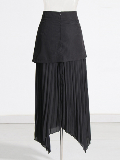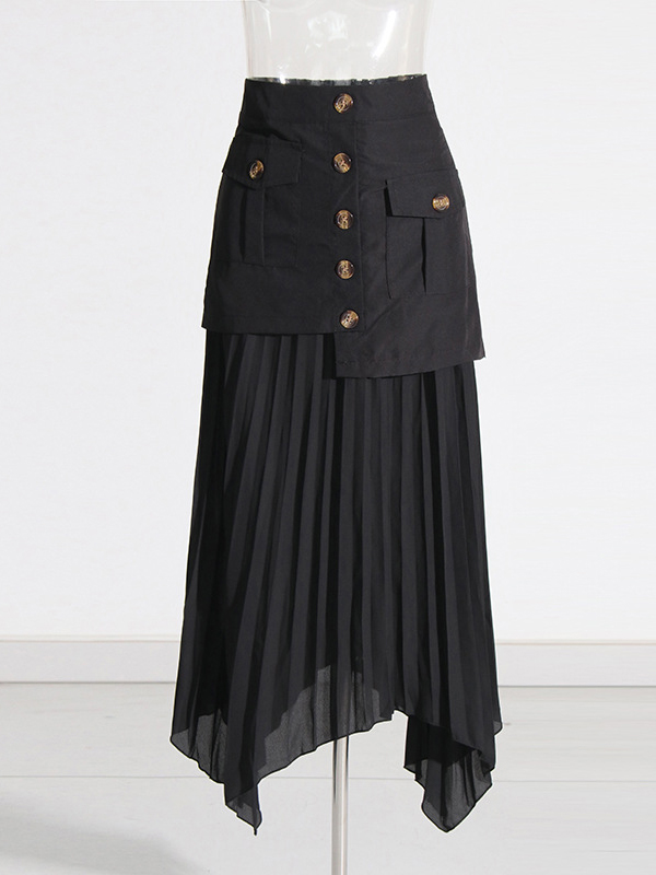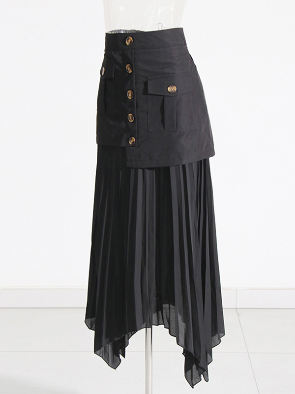 Zipper Split-Joint Pleated Buttoned Asymmetric Loose A-Line Skirts Bottoms